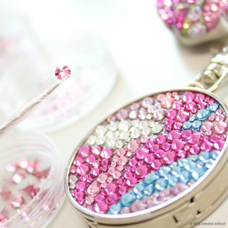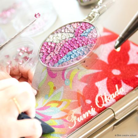 クリスタライズ(スワロフスキー)を対象物に配置し、取り付ける技法。(デコ電)デコレーション=【クリスタライズ(スワロフスキー)など各種パーツを取り付けること】という概念が広く知られています様に、こちらのデコレーション技法は最もメジャーなデコレーション技法になります。
